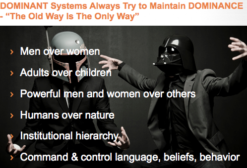 2) Historical attachment to old success formulas (lacking awareness and/or the courage to examine biases and pursue “new”, let alone let go of outdated leadership/business paradigms, because the leaders are actually benefitting from the attachment to the status quo – attached to what they know – attached to that imbalance of power – a preference for proof and reliability)